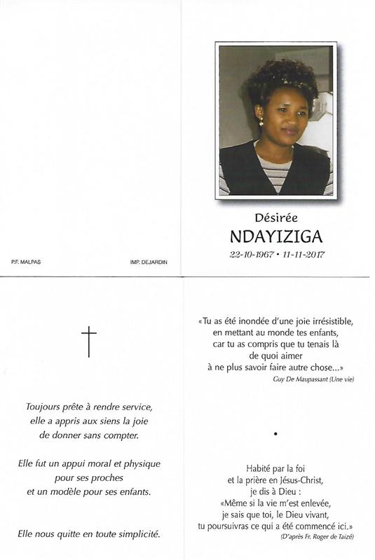 Décédée à Liège (4020) le samedi 11 novembre 2017 à l'âge de 50 ans