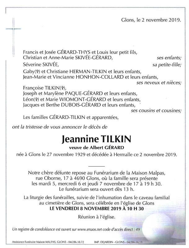 Décédée à Hermalle-sous-Argenteau (4681) le samedi 2 novembre 2019 à l'âge de 89 ans