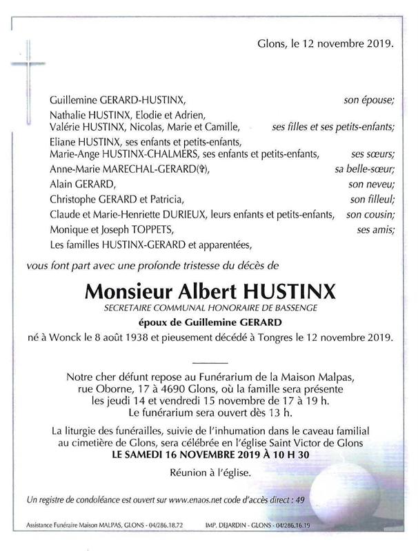 Décédé à Tongeren (3700) le mardi 12 novembre 2019 à l'âge de 81 ans