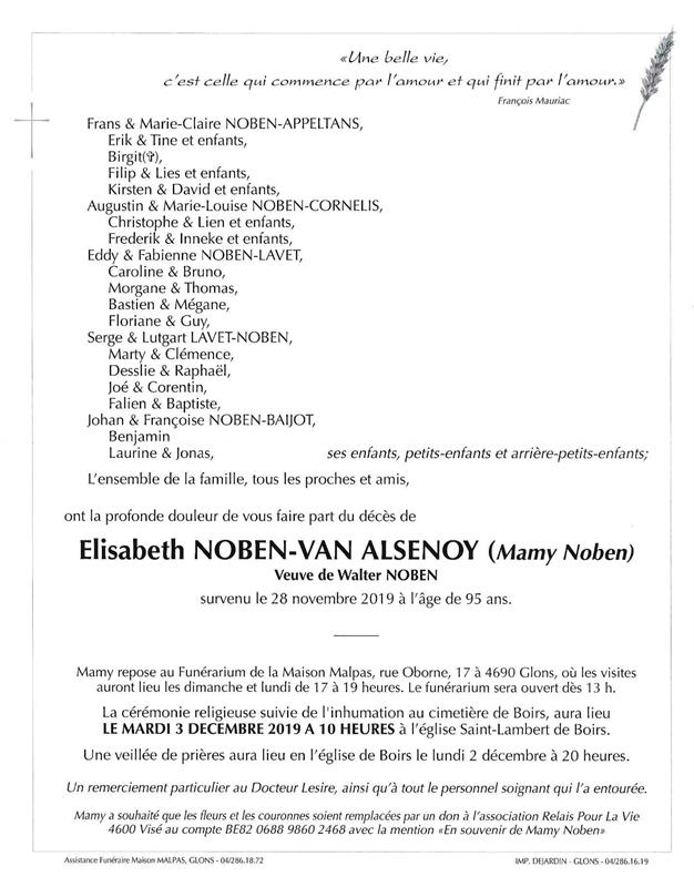 Madame Elisabeth NOBEN née VAN ALSENOY (Mamy Noben)