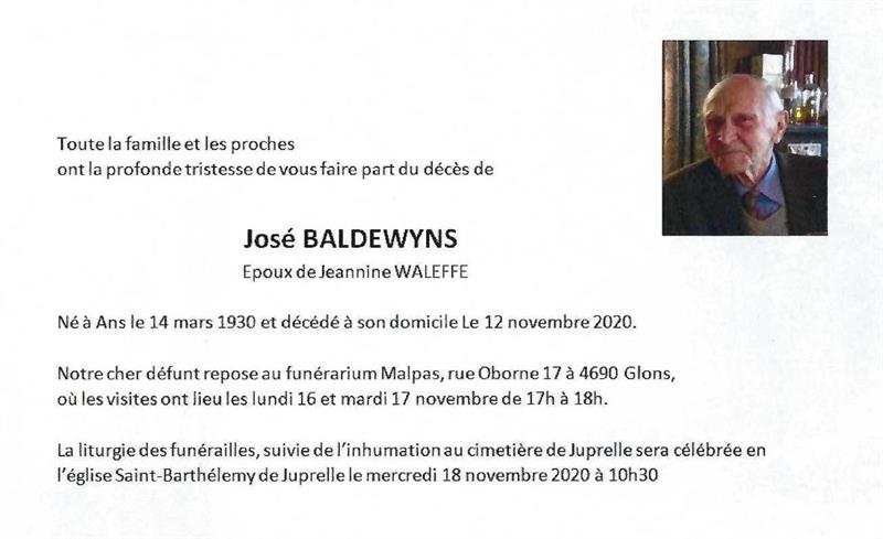 Décédé à Juprelle (4450) le jeudi 12 novembre 2020 à l'âge de 90 ans