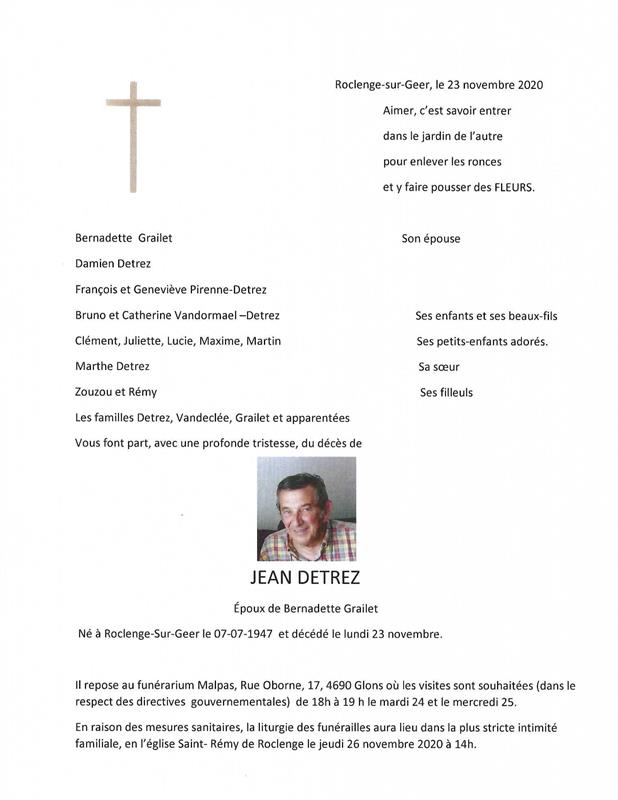 Décédé à Bonheiden (2820) le lundi 23 novembre 2020 à l'âge de 73 ans