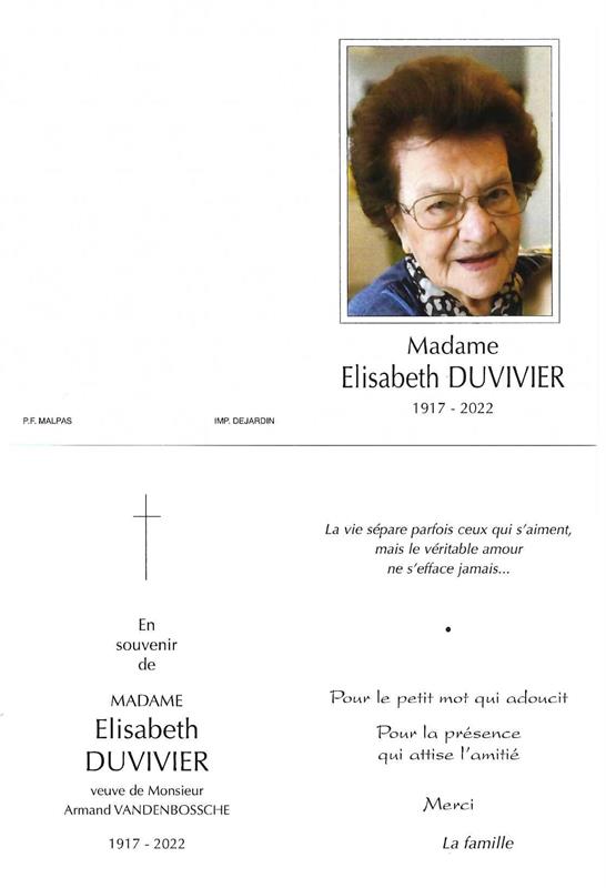 Madame Elisabeth DUVIVIER