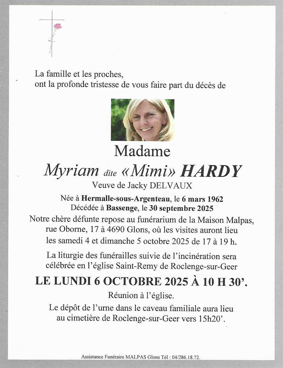 Décédée à Bassenge (4690) le mardi 30 septembre 2025 à l'âge de 63 ans