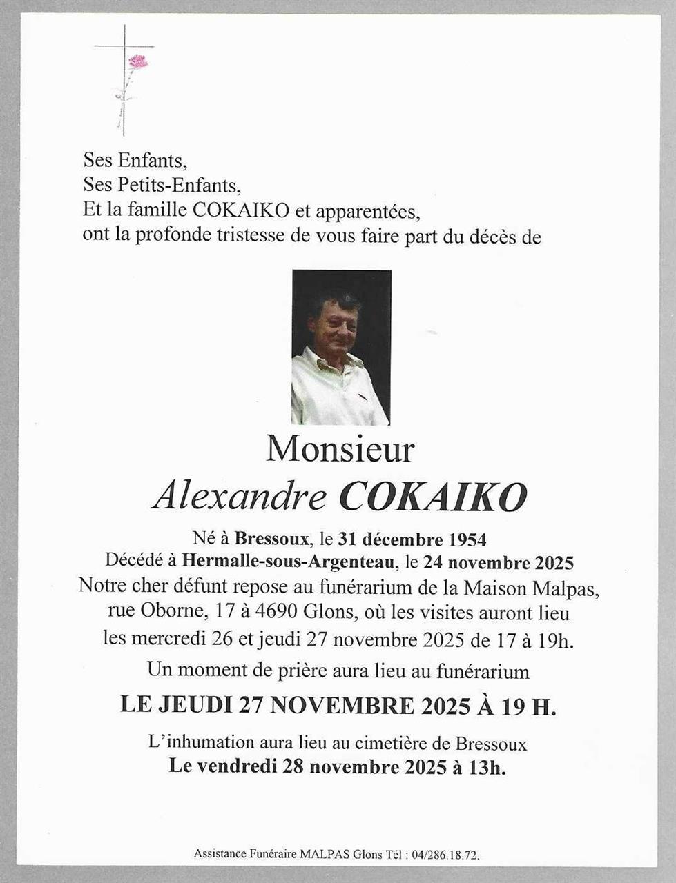 Décédé à Hermalle-sous-Argenteau (4681) le lundi 24 novembre 2025 à l'âge de 70 ans
