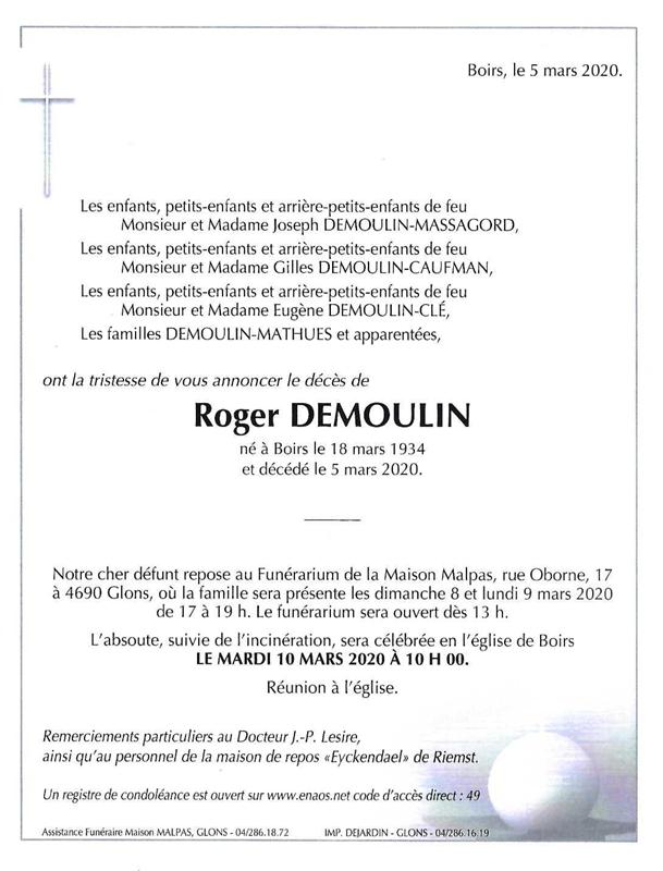 Décédé à Riemst (3770) le jeudi 5 mars 2020 à l'âge de 85 ans