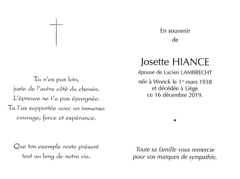 Décédée à Liège (4000) le lundi 16 décembre 2019 à l'âge de 81 ans