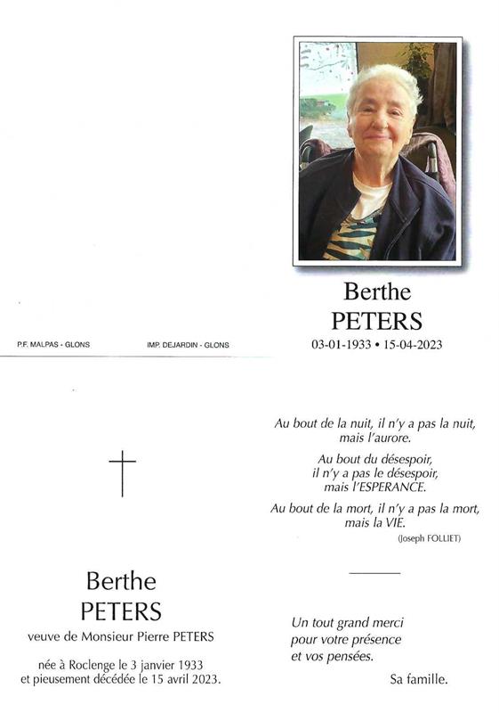 Décédée à Roclenge-sur-Geer (4690) le samedi 15 avril 2023 à l'âge de 90 ans