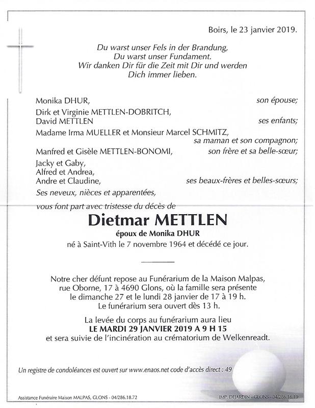 Décédé à Boirs (4690) le mercredi 23 janvier 2019 à l'âge de 54 ans