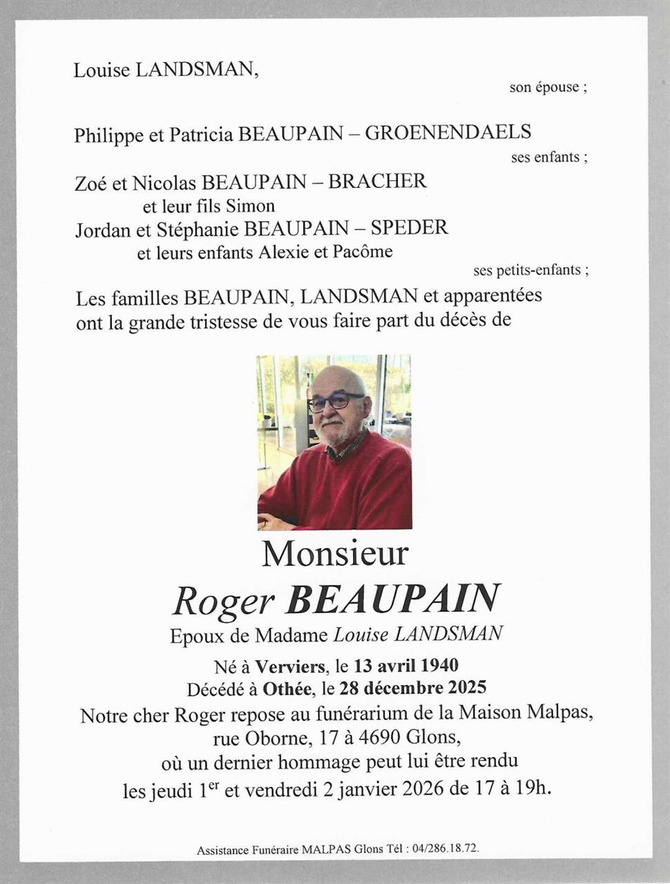 Décédé à Othée (4340) le dimanche 28 décembre 2025 à l'âge de 85 ans