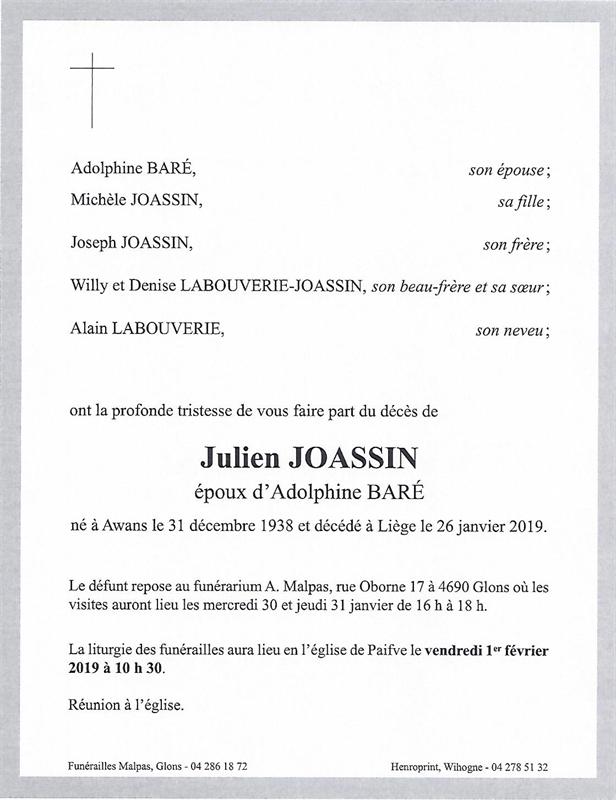 Décédé à Liège (4000) le samedi 26 janvier 2019 à l'âge de 80 ans
