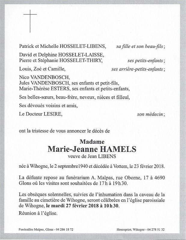Décédée à Vottem (4041) le vendredi 23 février 2018 à l'âge de 77 ans