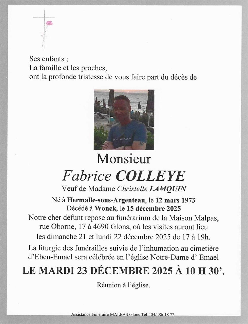 Décédé à Wonck (4690) le lundi 15 décembre 2025 à l'âge de 52 ans