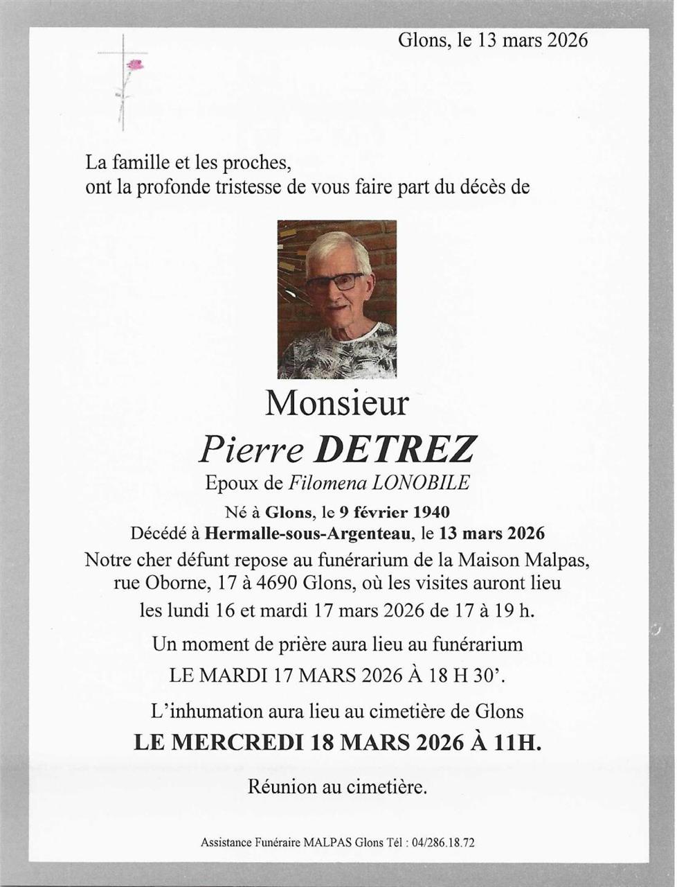 Décédé à Hermalle-sous-Argenteau (4681) le vendredi 13 mars 2026 à l'âge de 86 ans
