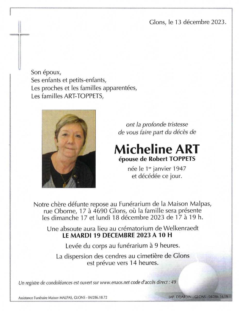 Décédée à Glons (4690) le mercredi 13 décembre 2023 à l'âge de 76 ans