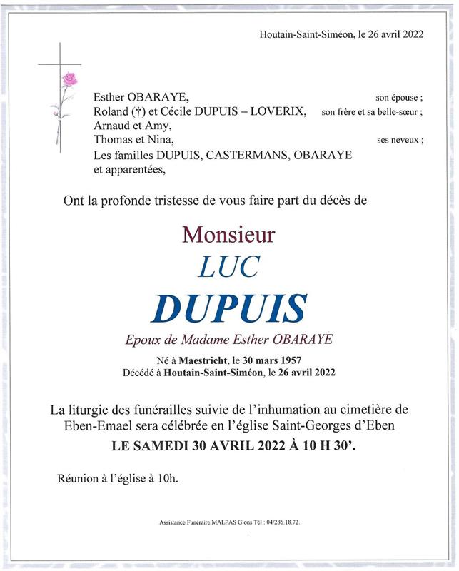 Décédé à Houtain-Saint-Siméon (4682) le mardi 26 avril 2022 à l'âge de 65 ans